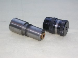Our old friend the caliper isn’t precise enough for this job. We need resolution under 0.001″ which is really the caliper’s practical limit. A micrometer is the correct tool for this job, but not just any micrometer. Remember our earlier discussion regarding the continuous taper of the case? That not so small detail means that a micrometer with standard round anvils can’t be used because the contact area of the round anvil is too large to capture the diameter of a specific point along a tapered case. The solution is a blade micrometer which has thin, flat anvils and will take a point reading along the taper.