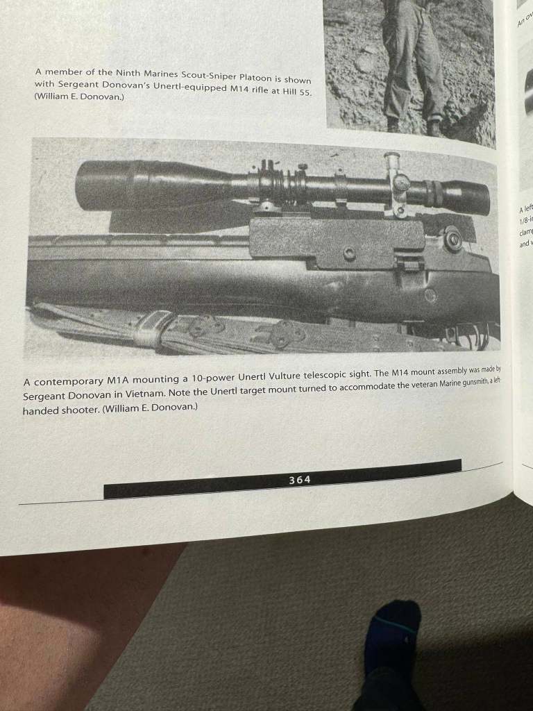“1) The Unertl and mount came out of the Jim Leatherwood estate and has his own written documentation from when he acquired it from Bill Donovan in 1997. What makes this particular scope and mount so special is that it was used by Carlos Hathcock in Vietnam after Bill Donovan (2112 armorer) assembled 11 rigs with the 10×43 Unertl Vulture and his hand made mounts. He made the mounts in his work tent atop hill 55 in Vietnam in 1967. He only made 11. Being a sniper himself, Bill Donovan and Carlos Hathcock tested these set ups on a live patrol in 1967 per his documentation. Carlos used scope and mount number 00003 and Donovan used scope and mount 00006. Hathcock recorded 5 confirmed kills with this scope and it has a total of 11 confirmed kills between himself and other snipers using the set up. It’s an incredibly rare and historic piece of USMC Sniping history.
