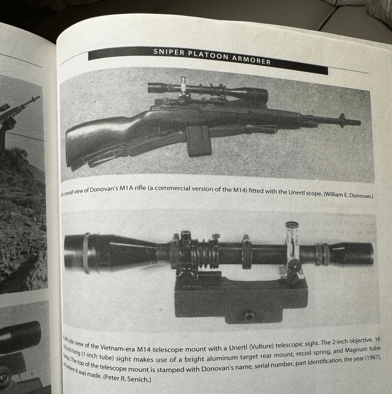 Only three of the original 11 scope mounts survived combat in Vietnam. Bill Donovan brought the three home with him from Vietnam. He sold serial numbers 00003 and 00006 directly to Jim Leatherwood in 1997. Leatherwood himself used one of these set ups and gathered confirmed kills. The serial numbers he used was never documented like 00003 and 00006.