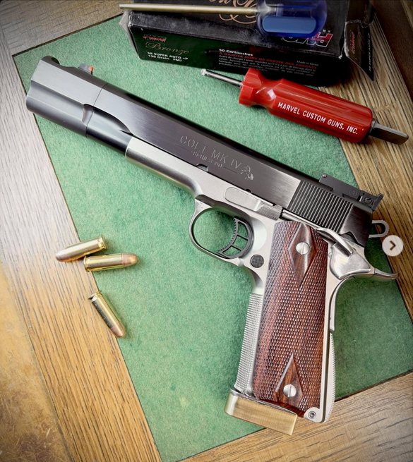 80 series compensated Colt in 38 super by Houston pistolsmith Eddie Jimenea. If you ever come across a 1911 with “EJ” inscribed on the trigger guard…BUY IT!