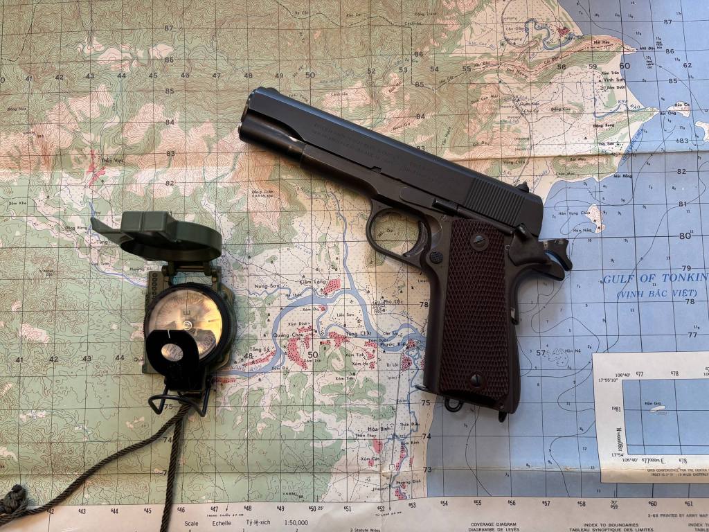 I was going through my stuff the other day doing some re-organizing and thought I would take a couple of pictures of it posed up with my guns for some beauty shots. That is a real war era map below.