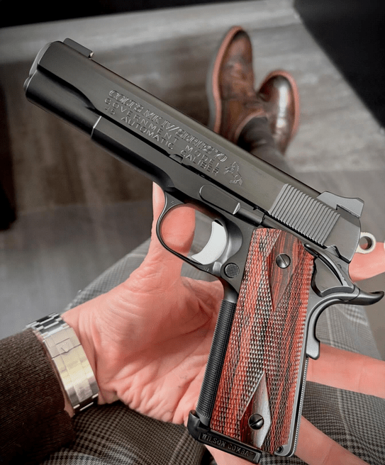 Colt 70 series 1911 in 45 ACP by Dave Lauck ((D&L Sports) out of Chino Valley AZ. Does it seem like some of the best 1911 smiths in the country live in AZ? I don’t order 1911s much these days…mostly because I can’t take the heartache. Send a gun, send a bunch of money, and then you get radio silence for 3-5 years. I’m too old for that bullshit. Ordering custom 1911s is a young man’s game. But this gun I just had to have. I called Dave a few years back, sent him a base gun, and this was in my hands 9 months later, no drama no fuss. Lauck spent 3 decades in law enforcement (Swat, narcotics, sniper, investigations, and patrol) and this DNA is clearly expressed in all of his pistols. He says every gun he builds has to be one that he would carry himself, or it does not go out to the client. All gunsmiths recite this empty mantra, but when he says it, I believe him. He tuned 7 magazines to this gun. Seven. He sent a list of ammo he successfully fired through it. He asked to get the gun back in one year to examine wear patterns—free of charge. I have a lot of guns, and limited time, so this gun will never know that kind of use, but it seems like it could, and it seems like he cares. This is why he was pistolsmith of the year in 2012….when that actually meant something. Grips by the venerable Craig Spegel….because we are not animals.