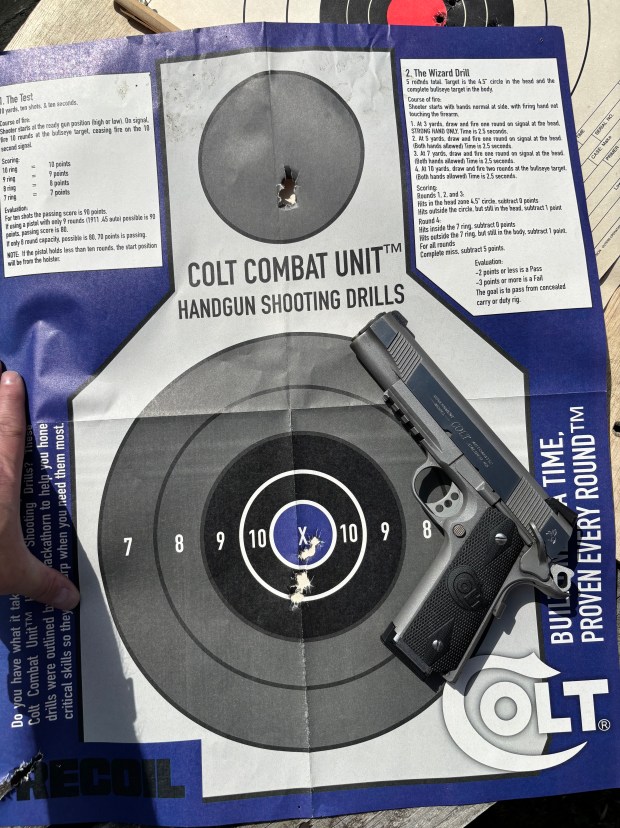Then I shot 10 rounds from 7 yards offhand semi rapid fire. This is a 10 round mag. I’m still in love with the Wilson 10 rounders