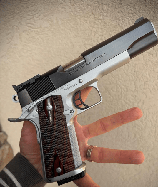 Colt 70 series 1911 in .45 ACP by 2014 APG Pistolsmith of the Year and industry legend Terry Tussey out of Mound House Nevada. Squared and checkered trigger guard, burried Bomar rear sight, Swenson thumb safety, sculpted beaver tail, magwell, two tone with chrome lower, Clark hard fit match grade barrel…this one checks all the boxes for me. Late in his career, Tussey was paralyzed in a bike accident from the waist down, but he still had full use of his arms and hands, so he smithed up until his final days. He died at the age of 80, succumbing to a respiratory infection. He was well liked by everybody in the industry and on my list of gunsmiths who mattered. Oh yea, he made 1911s for actor Steven Seagal….because nobody else would. This one finally found proper grips made by Mr. Craig Spegel.
