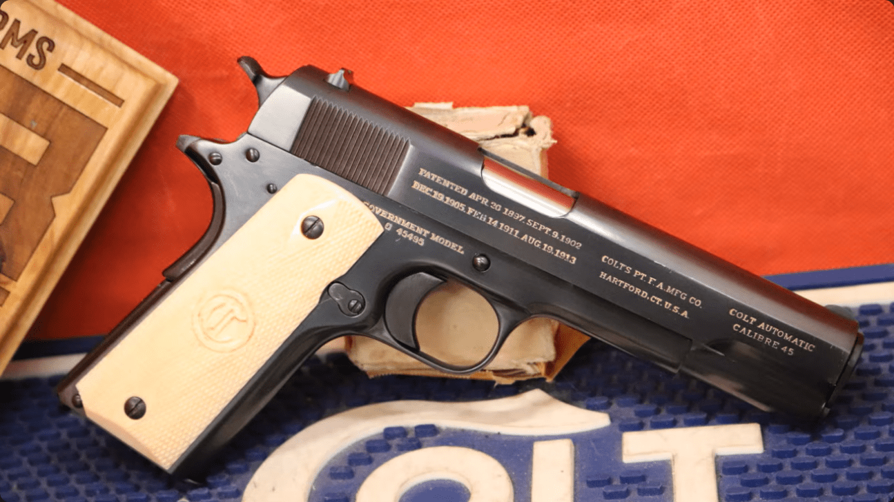 One of a pair of Factory Special order 1911’s, presented by the Harvard regiment to Professor Capt Constant Cordier. Constant would retire a US Army Colonel, was instrumental in the setting up the nation’s first ROTC program at Harvard University in 1916 during the First World War.