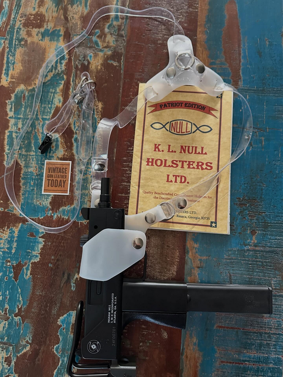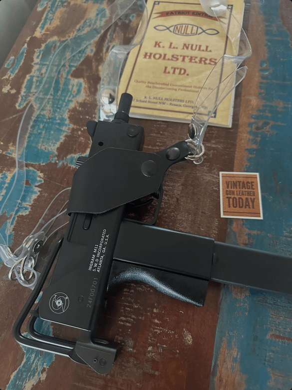 I don’t have much to say about this other than it is very cool. A K.L. Null holster for the favorite machine gun of every movie and TV show cocaine runner in the 1980s. Jason at Vintage Gun Leather Today had it up for about a day before it was sold out. I wasn’t the only one who thought it was pretty neat.