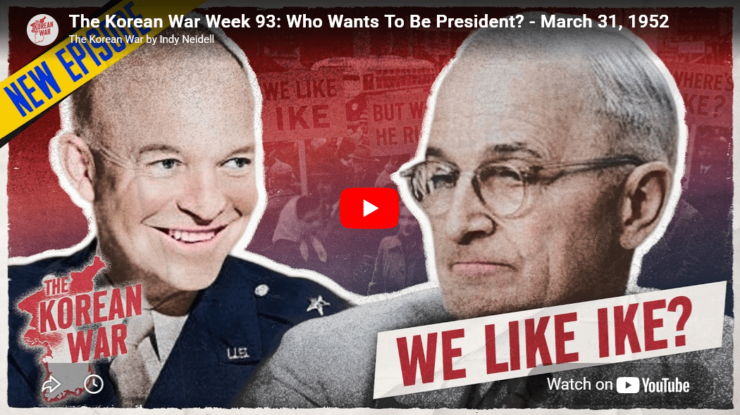 A surprise announcement this week leaves the US wondering just who is going to run for President- the election is this fall. Whoever does run and win, it can’t help but have an impact on this war. As for what’s going on in the war, Operation Mixmaster winds up, having moved the US 1st Marine Division far to the west along the front lines. The operation was a success, but there are a host of new dangers to deal with in the new defenses. Operation Saturate goes into action- this is another aerial interdiction campaign against Communist logistics, but early results are disappointing, and the future composition of the South Korean armed forces because more and more an issue of contention.