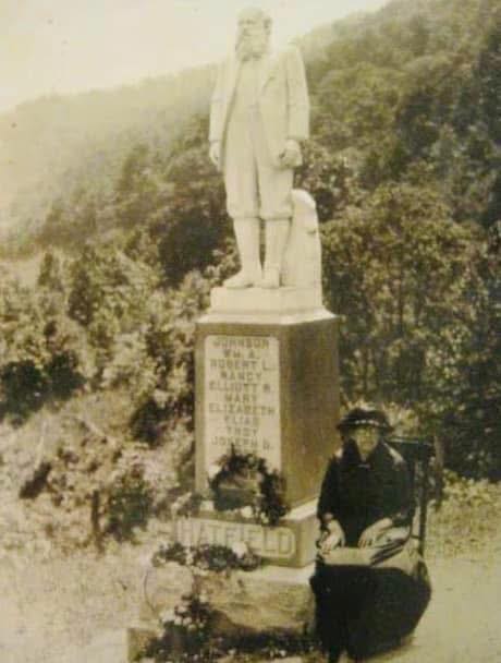 When the white Italian marble statue marking the grave of William Anderson ‘Devil Anse’ Hatfield was finally set in place, several of his strong sons and grandsons gently carried their grieving mother, Louvicey (Levicy) Hatfield, seated in her chair, up the steep hillside to the Hatfield Family Cemetery. It was said she could not make the climb on her own.