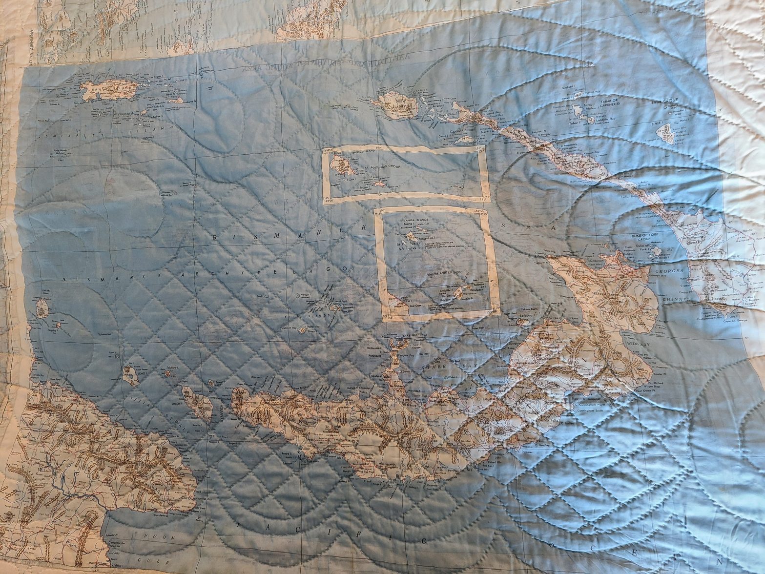 During World War II my grandfather was a pilot in the South Pacific. Being a pilot meant getting issued silk maps. Silk might sound like an odd material for a maps but it was for the durability and waterproof qualities (it gets wet but doesn’t break down like paper or cotton). Well silk, then asContinue reading “From the Footlocker: Silk Map Quilt”