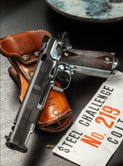 scarce_and_desirable Jim Boland’s “Space Gun” in .38 Super, designed for shooting steel as the Steel Challenge was then held at the Mad Doctor’s home range, Wes Thompson’s Juniper Tree Range. The pistol features Boland’s incredible beavertail work and his signature “gas pedals and mud flaps” (enlarged ambi safety levers with a thumb guard to keepContinue reading “Jim Boland Custom”