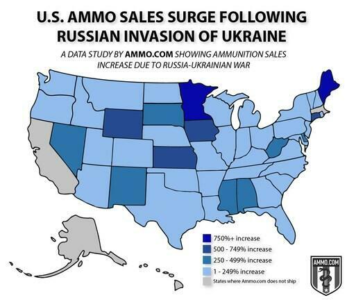From Zerohedge Ever since Russian forces invaded Ukraine, Americans have panic hoarded all types of ammunition, according to a top US online gun retailer. “A recent surge in consumer demand for small arms ammunition – the onset of which perfectly coincided with the Russian invasion of Ukraine on Feb. 24, 2022,” AMMO, Inc., a US-based ammunition and components manufacturer,Continue reading “Surge in consumer demand for small arms ammunition “