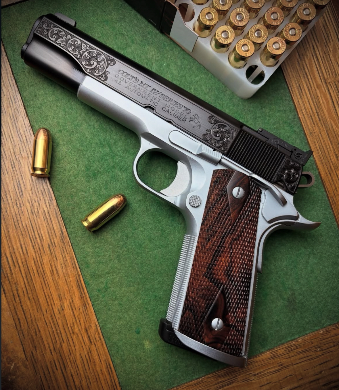Pistol_purview Colt 80 series 1911 in .45 ACP by former Colt Custom Shop pistolsmith Dave Panicotti. This gun in silvery DLC is shod in Wood Caliber grips. I apologize, but sometimes 80 series guns, no matter how nice, just don’t get Spegels. Supplies are limited. Swipe left to see Dave (left) and his co-worker MarkContinue reading “Panicotti Custom Colt”