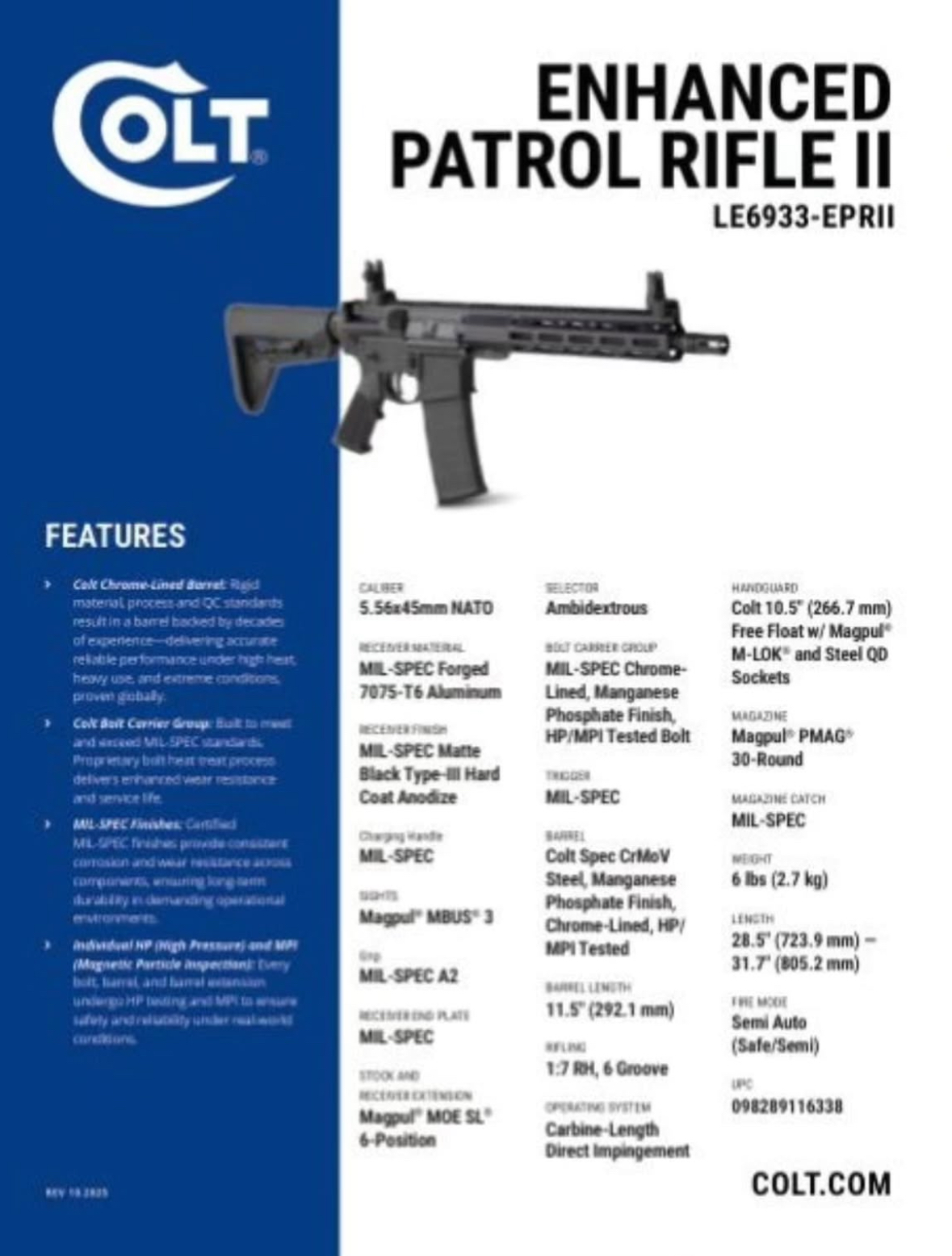 “Colt is excited to announce the release of four new SKUs in the Enhanced Patrol Rifle lineup — the EPR II and EPR II PRO models — now live on the Colt website and available for customer orders and shipment. The next evolution of Colt’s established carbine platform, the EPR (Enhanced Patrol Rifle) II blendsContinue reading “New Colt Rifles”