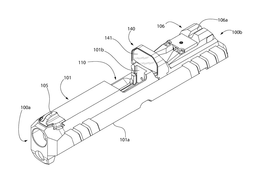 The following was just recently published on the USPTO website, and has not yet migrated to Google Patents. The depicted pistol looks like a cross between the Security-9 and the Ruger 57. The rod dot’s emitter is built into the rear sight,and will not require suppressor-height iron sights to co-witness.